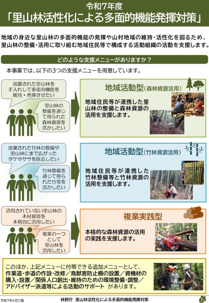 里山林活性化による多面的機能発揮対策交付金事業とは?